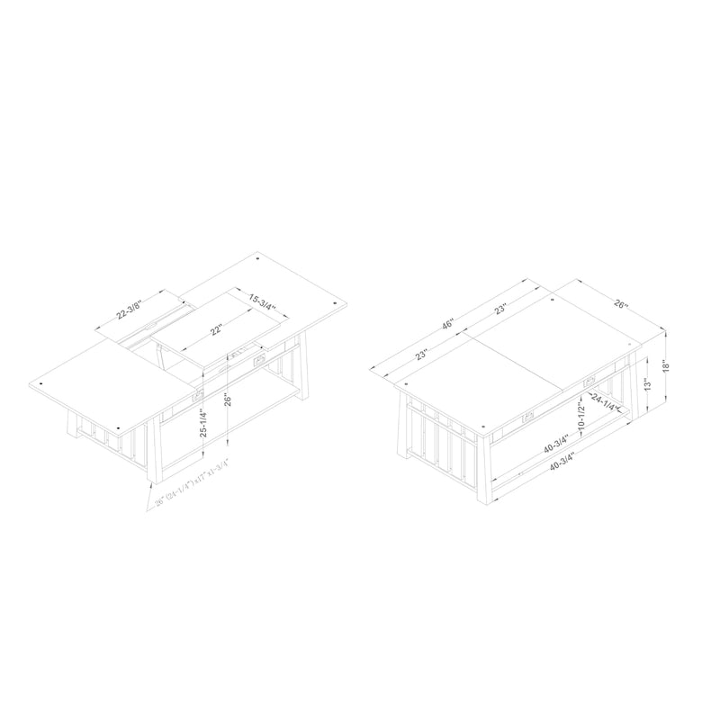- Overall: 46W x 26D x 18-26H