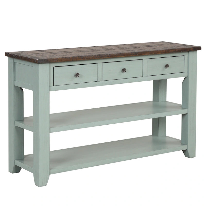 Modern Solid Pine Wood Top Console Table with 3 Drawers and 2 Shelves